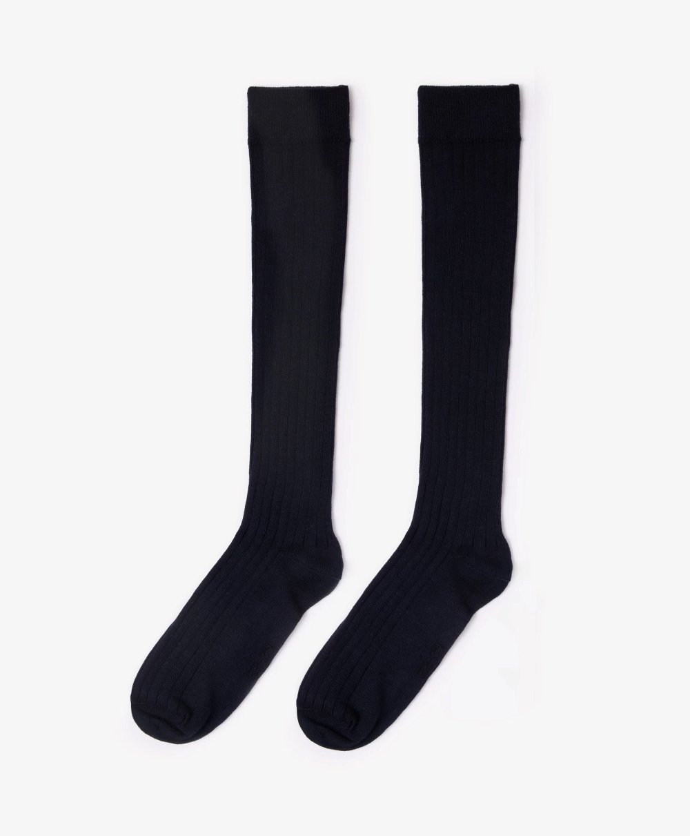Синие гольфы, связанные эластичной резинкой, - изделие из разряда маст-хэв! Это не только удобный, но и остромодный аксессуар, способный подчеркнуть энергичный школьный образ в стиле преппи. Гольфы выполнены из дышащей  пряжи на основе хлопка, создающей приятный тактильный контакт с кожей. Состав: 80% хлопка, 15% полиамида, 5% эластана