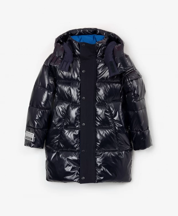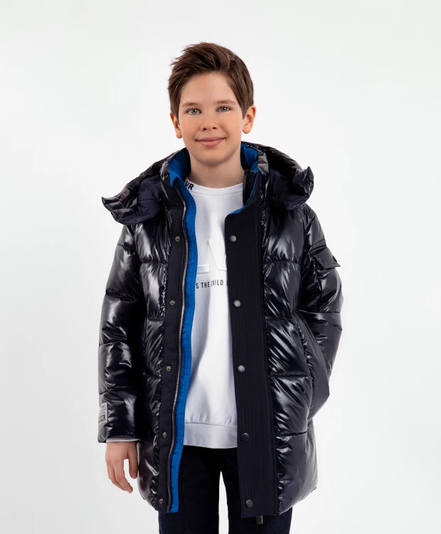 Стеганое демисезонное пальто на искусственном пуху - отличный повседневный вариант! Созданное в лучших традициях стиля casual, пальто красиво завершит школьный комплект, а также будет незаменимо для свободного времени. Дизайн модели построен на самых актуальных трендах сезона. Сочетание блестящей и матовой влагостойких плащовок создает интересную игру фактур. Карманы с уютной флисовой подкладкой на передней части, подчеркнутые широкими лИсточками, а также объемный карман с клапаном на рукаве делают пальто насыщенным модными и удобными функциональными деталями. Яркая подкладка сочного синего цвета придает модели контраст. Центральная застежка пальто - молния - усилена внешней ветрозащитной планкой с кнопками. В оформлении модели использована плотная репсовая тесьма, резиновая нашивка на отстегивающемся капюшоне, светоотражающий шеврон с шрифтовыми элементами на рукаве. Пальто оснащено удобными лямками на подкладке для возможности носить его в помещении за спиной как рюкзак.
